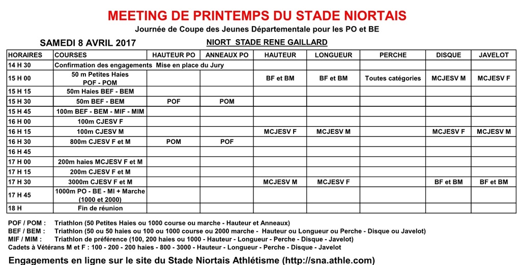 Meeting de printemps organisé par le Stade Niortais.